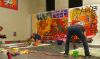 Für Otto Muehl ist das Jahr 1984 geprägt von der Arbeit an neuen Formen des Aktionsfilms. Mit dem Projekt eines Spielfilms über das (un)wirkliche Innenleben des Vincent van Gogh beginnt eine Phase, in der die Malerei zum Bestandteil des Drehbuches und der Geschichte wird. Muehl malt im Film die Bilder des Helden (April – August 1984). Parallel zum Film „Vincent“ entsteht eine „van Gogh Serie“, welche die Tabuthemen der Bilder der „12 Aktionen Mappe“ (1970/71) wieder aufnimmt. Was ist malbar, wenn das Geschehen im Bild über die vorstellbaren Vorstellungen hinausgeht? Wenn sich auf den lustwandelnden, sonnen durchtränkten und messianisch aufgeladenen Leinwänden des heiligen Vincent Geschichten der Abgründe mensch licher Existenz ereignen. Die Bilder der van Gogh Serie be finden sich inzwischen in verschiedenen Privatsammlungen in Europa und den USA. Die Volksbühne versammelt für das Projekt „VAN GOGH REVISITED“ acht zentrale Werke dieses Zyklus in Berlin. Paul McCarthy und Theo Altenberg haben in einem besonders präparierten Raum der Volksbühne, angesichts der original MuehlBilder von 1984, einen neuen „van Gogh Zyklus 2015“ gemalt, der wiederum auf Muehls Interpretation von Van Goghs Malerei Bezug nimmt. Die Malaktion wurde über mehrere Videoleinwände direkt ins Große Haus übertragen. Die Bilder beider Serien sind von Samstag, den 12.9. bis Sonntag, den 27.9. für das Publikum vor und während der Abendvorstellungen in einem separaten Ausstellungsraum sichtbar.